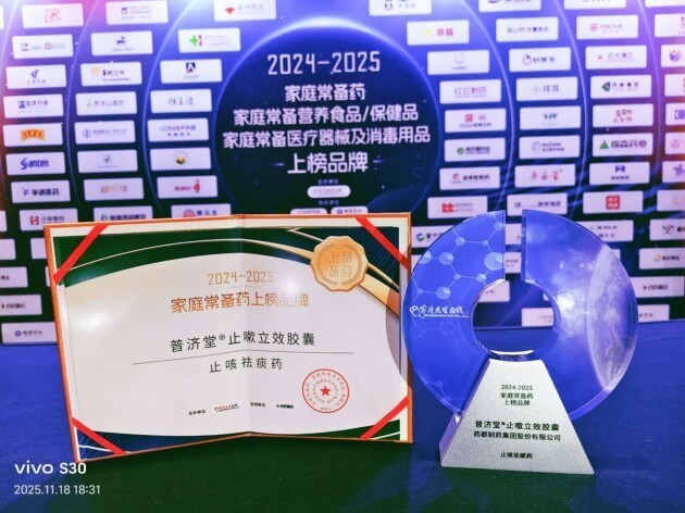 2025年11月18日,备受行业瞩目的“2024-2025年度家庭常备药上榜品牌”颁奖典礼在南京第91届全国药品交易会秋季展圆满落幕。药都集团携明星产品普济堂®止嗽立效胶囊荣耀亮相,与行业权威专家、知名药企代表及主流媒体齐聚一堂,共襄行业盛举,见证家庭健康产业高质量发展的崭新篇章。